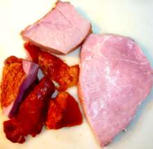 Копчености (ветчина, обрезки) — 300–400 г