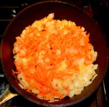 Когда лук станет прозрачным – добавить морковь.