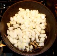 В оригинальном рецепте чеснок закладывается на этапе тушения овощей. Я не вижу в этом смысла – при длительной тепловой обработке аромат чеснока полностью исчезнет.