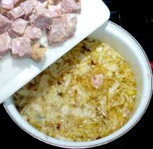 Если у вас нет скороварки – сварите бульон в обычной кастрюле (см. как). Можно конечно обойтись без бульона и сварить щи на воде, но на бульоне их вкус будет гораздо богаче.