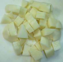Картофель нарезать небольшими кубиками.