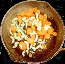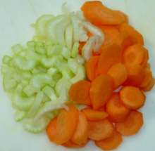 Морковь и стебель сельдерея нарезать произвольно.