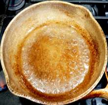 Раскалить сковороду с жиром из тушонки.