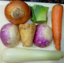 Подготовить овощи для бульона.