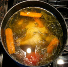 Сварить бульон из отходов и мякоти индейки в скороварке (см. как) или обычной кастрюле (см. как).