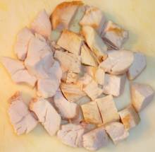 Остывшую мякоть нарезать небольшими кубиками.