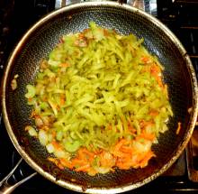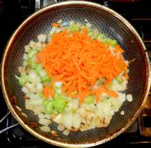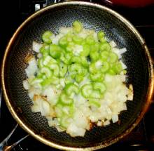 Выложить сельдерей к луку.