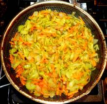 Когда лук станет прозрачным – добавить в сковороду морковь.