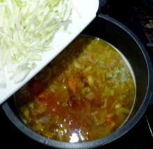 Через 10 минут добавить капусту в кастрюлю.