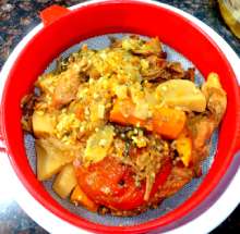 Добавить овощи со сковороды.