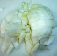 Лук нарезать мелким кубиком.