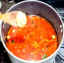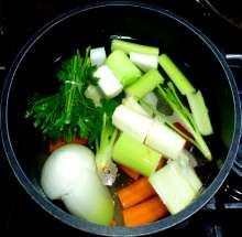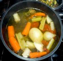К этому времени овощной бульон дойдёт до готовности. Выправить его на соль.