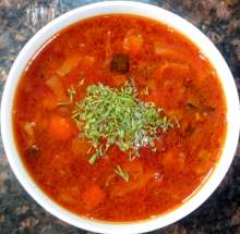 Оригинальный вариант постного борща. Основная фишка – разнообразные овощи, включая перец, баклажан и кабачек, обжариваются, что существенно интенсифицирует вкус борща. В отличие от оригинального рецепта мой варится дольше и приготовление сложнее, поскольку приходится по ходу дела исправлять ошибки оригинального.