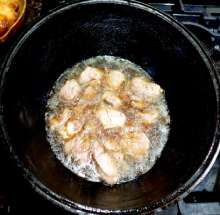 Обжарить его также частями до легкой корочки.Вынуть из казана.