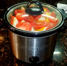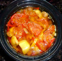 Блюдо интересно способом термической обработки продуктов. В Марокко горшочки с таким жарким (Танжии) готовятся долго около горящей печи, а не внутри. Это позволяет мясу очень хорошо протомиться. У нас ни горшочка, ни печи нет, зато есть медленноварка - вот её и будем использовать.