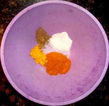 В миске смешать куркуму, зиру, паприку, черный перец.