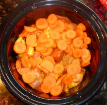 Можно добавить несколько кусочков срезанного ранее жира.Морковь нарезать шайбами.