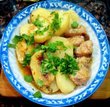 | Пиво. | В форму для запекания слоями выкладываются картофель, жареный лук, поджаренное мясо и снова картофель. Ингредиенты заливаются пивом и запекаются под крышкой 1.5 часа при 200 С. По готовности картофеля форма без крышки остается в духовке до появления легкой корочки. При подаче блюдо заправляется чесноком и зеленью. |